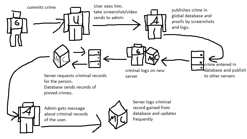 What if Server-Owners could easily check Global criminal-records of specified users via an criminal database. Thy only check them via command or via tool and the mod/plugin would connect to the database on itself and check if there are any records about this player. And also they can add records via commands or website.