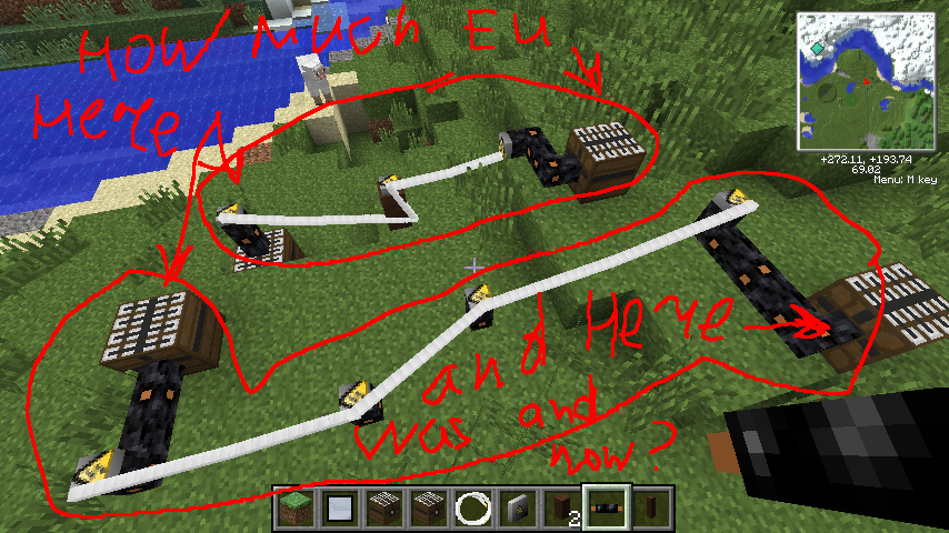 Made uninsulated wires placeable in world and zap living creatures (currently working on special effects). So old cables will be missing. Tell me how much EU was and now in batboxes on your screenshot.