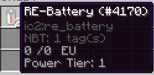 May 26, 2016 at 11:02 AM #1 IC2 version: 2.3.249-exp18Single player, Survival cheat mod.Full/empty battery will lose it's capacity when stacked together.It cannot be correctly charged/uncharged when stacked.Split them and they can be put it in batbox separately.
