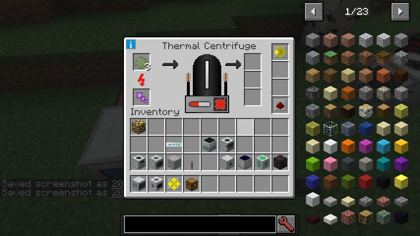 What I'm trying to do, is putting some Uranium Ore into a Macerator to produces Crushed Uranium Ore which then should be automatically ejected into the Ore Washing Plant (works fine). After washing, the Purified Uranium Ore should be automatically ejected into the Thermal Centrifuge and the Stone Dust + Tiny Pile of Lead Dust should be ejected into a chest for later use. The problem here is, that no matter how I try it, I can't get the Ore Washing Plant to eject anything. I tried it with an eject and advanced eject upgrade. I tried a pulling upgrade for the Centrifuge and since I'm using buildcraft I also tried to use extraction pipes, normal pipes and what-not pipes, tho nothing seems to work.