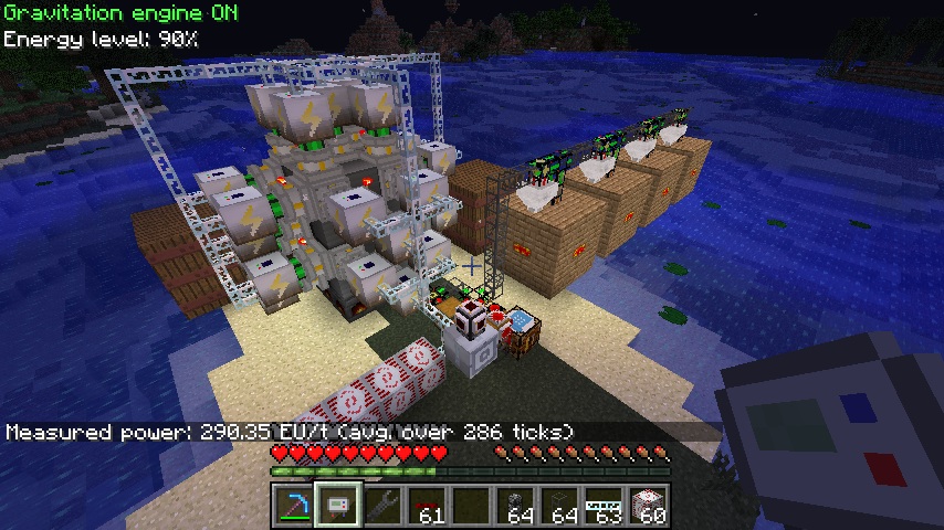 • Well, it does look wicked, but the math somehow doesn't really work for me, but its still a very nice way to produce power. My setup is a max sized high pressure boiler, good for twice the steam that of the low pressure boiler in your example. Still, it doesn't produce 360 EU/Tick, but 290 EU/Tick. I tried many other setups with steam going through 18 different golden waterproof pipes, just a few and also hooking the engines up to golden conductive pipes, but all of those ways didn't even come close to the 360 EU/Tick (more like 160 at best). Anyway, the coal coke lasts 150 seconds or 3000 ticks, so 870000 EU, which is a lot more then the EU's you need to produce the coal from UU and if you feel fancy scrap can boost this to an even higher level, but I really don't think this is OP. The massive amount of resources you need to build the 4 water tanks, the 4 coke overs, the 18 (23 in my setup) industrial steam engines (about 285 iron?), the 18 (23 again for my test setup) transformer (Those really are expensive with 6 iron, iron gear, generator and circuit. Total about 19 iron times 23 = 437?), boiler (Only 81 iron? Didn't expect the boiler to be light on the iron compared to the engines and the transformers.) and the buildcraft/logistics pipes system (also some gold and diamonds involved with that). So basically, you convert massive amounts of iron and other resources (including time, but that is what it is all about when ) to make a huge and epic machine which doesn't make a lot of sense (really just because of the UU coal recipe) and also isn't really overpowered as can build nuclear reactors with a breeder to feed them for about the some resources (I think, but not totally positive) which probably gives more EU per invested resource. It wouldn't be as epic as this and it wouldn't a steady amount of creosote oil. And you can easily upgrade the production of coal (by changing the gate settings a bit) and coal coke (and therefore creosote oil production) by just adding coke ovens. I really enjoyed spending some time building something with railcraft. If I ever need some creosote oil production, I will probably build something like this.