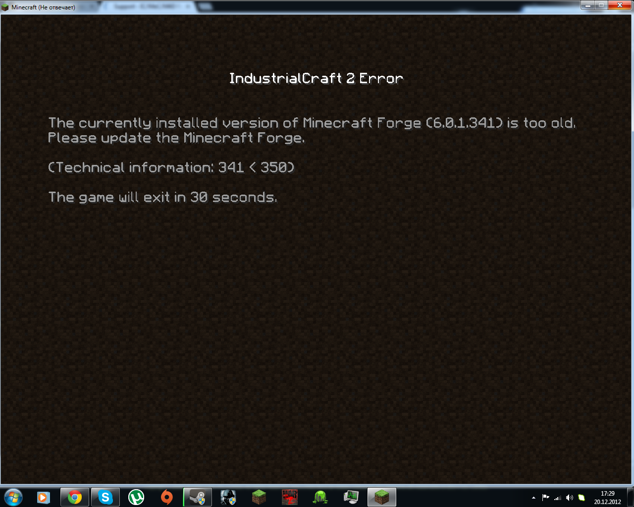 Hello,I have installed IC2 for MC 1.4.2. I have the last minecraft forge, but it says that my version of forge is out of date. I have attached the file what it says when i open Minecraft. Does anyone know what is it?