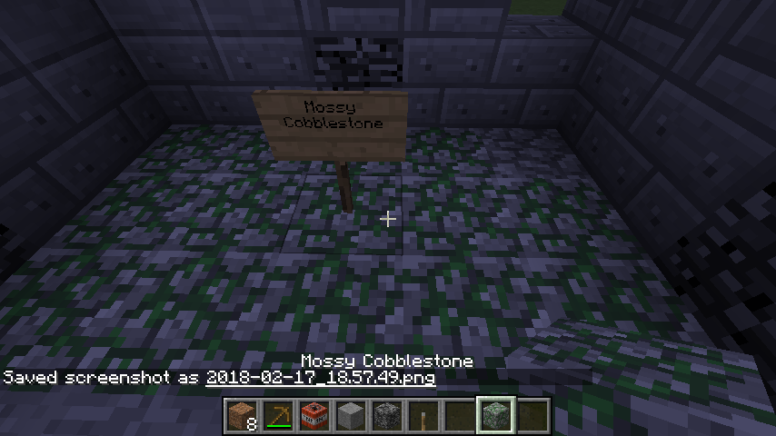 I finally got the code correct instead of tautology code. also I changed the name moss stone into mossy cobblestone without a resource pack
