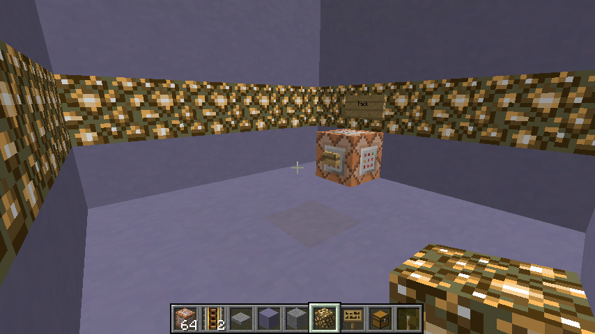 I have some new screenshots for one of the challenges that lead from that room. Thanks to the new snapshot, the room is cleared but I'm not showing it off because I don't believe it to be ready yet. These new screenshots are of the pathway lead to a test that can be easier if you are playing with a group. Ignore the command block (it is there for development purposes)